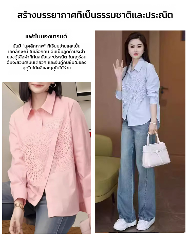 เสื้อเชิ้ตผู้หญิงแบบตัดต่อ